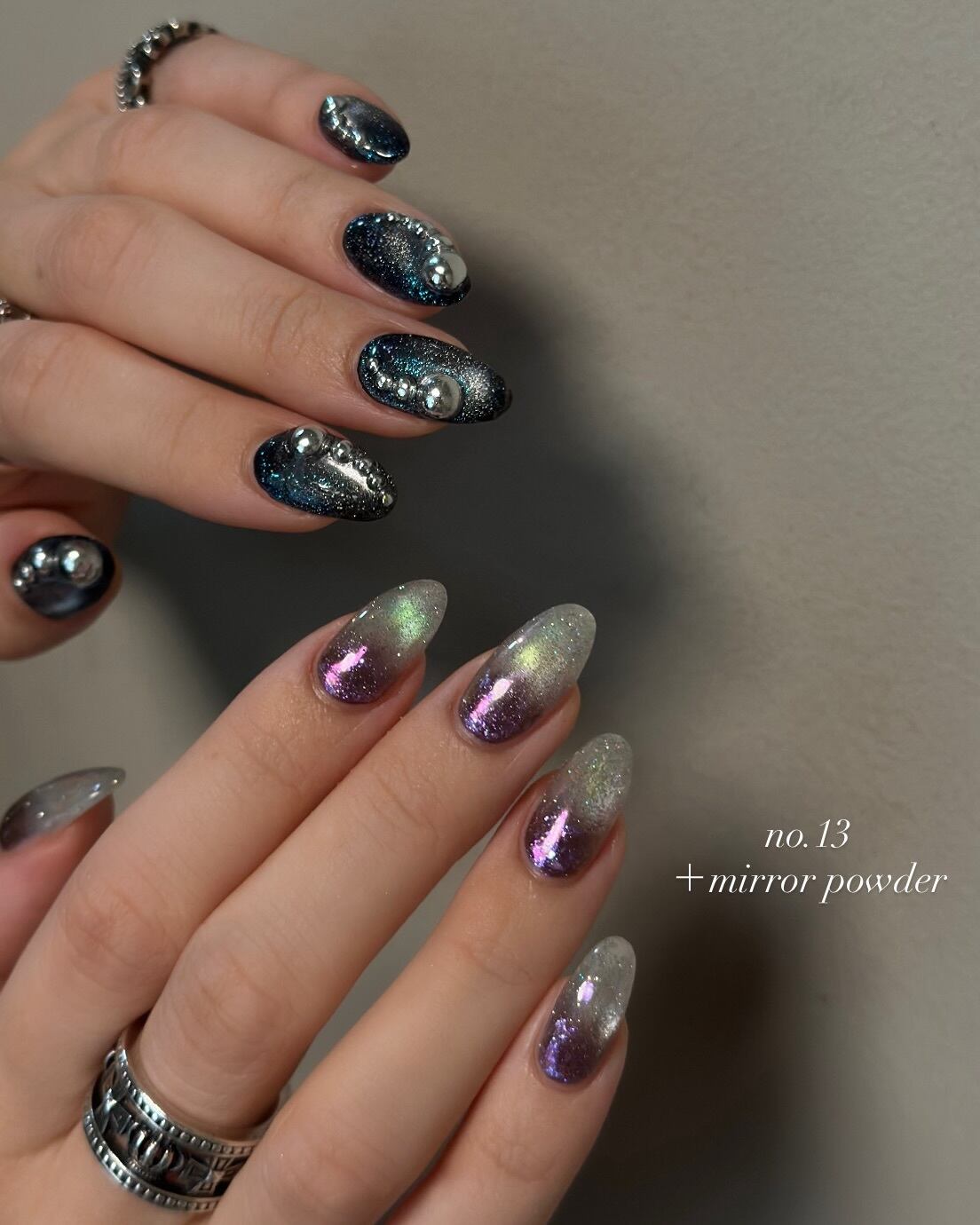 マグネットとフラッシュのmixカラーになっており、ムラになりにくくマグネットの割れにくさ、フラッシュの虹色の調合にこだわっております。
