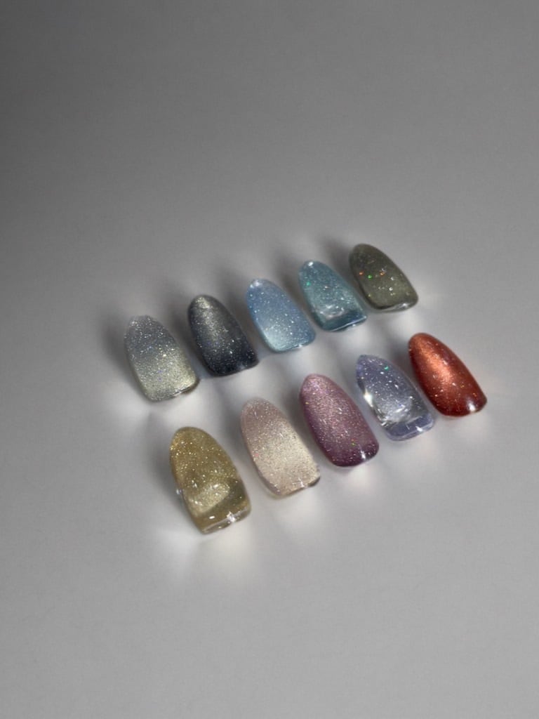 マグネットとフラッシュのmixカラーになっており、ムラになりにくくマグネットの割れにくさ、フラッシュの虹色の調合にこだわっております。